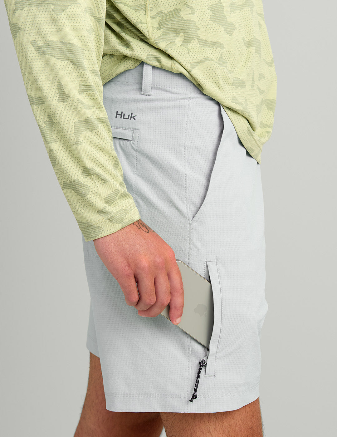 The A1A Pro Collection is inspired by the heat and humidity of equatorial regions, built to perform when the temperature soars. Crafted from a lightweight 98% polyester / 2% spandex blend, the A1A Pro Short delivers breathable comfort, UPF 30+ sun protection, and just the right amount of stretch for unrestricted movement. Stealth storage details include a zippered thigh pocket, a secure back zip pocket, and a drop-in pocket for quick access. Slanted front hand pockets and a soft branded interior waistband add an extra touch of comfort and refinement. Designed for long days on the water or in the heat, the A1A Pro Short keeps you cool, capable, and ready for whatever the day brings.