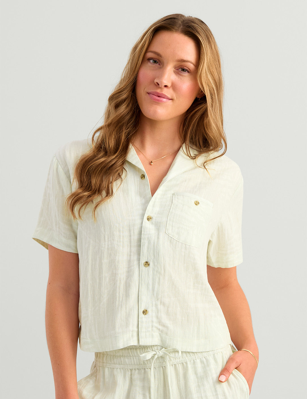 The Breezeway Camp Shirt captures the easy comfort and effortless style of coastal living. Crafted from a soft 96% rayon / 4% nylon blend, it delivers a lightweight, airy feel that moves with the breeze. The boxy, cropped fit and 22” length create a relaxed silhouette, while the camp collar, horn button details, and chest pocket add timeless character. Finished with self-fabric side seam binding and a shaped hem, it’s a laid-back essential for warm days and easy evenings by the water.