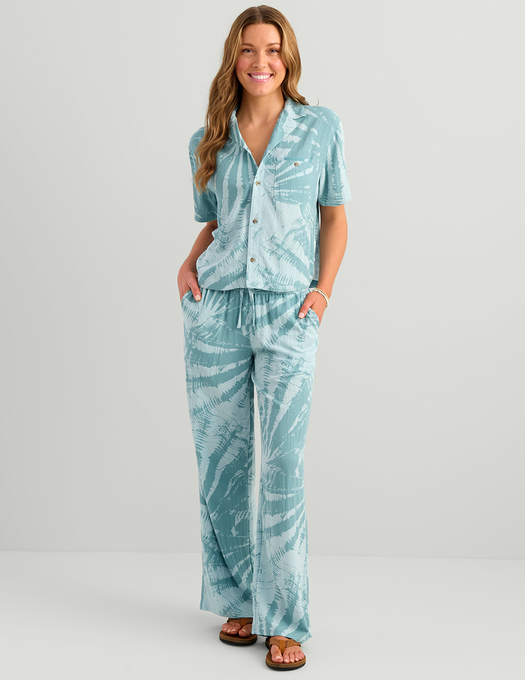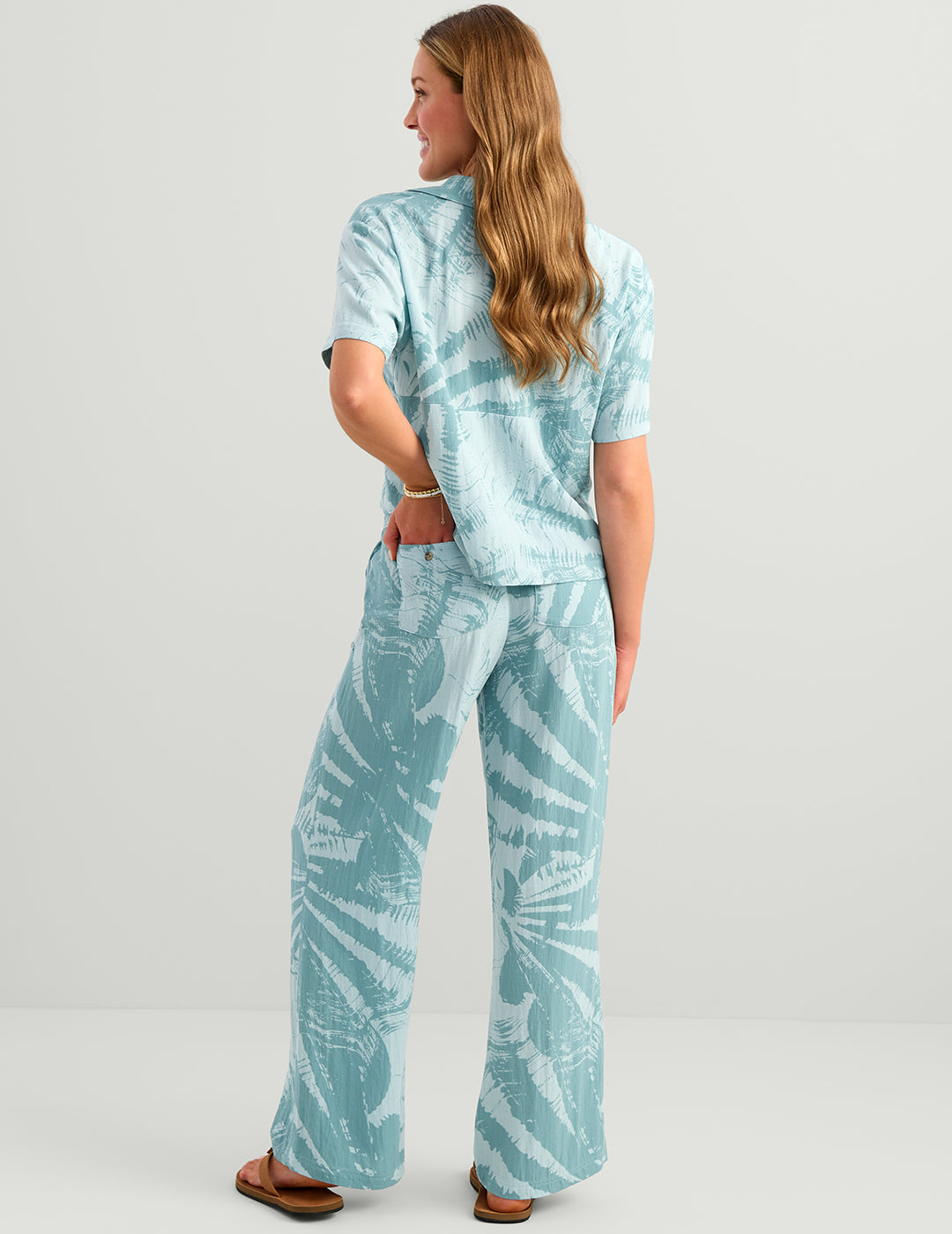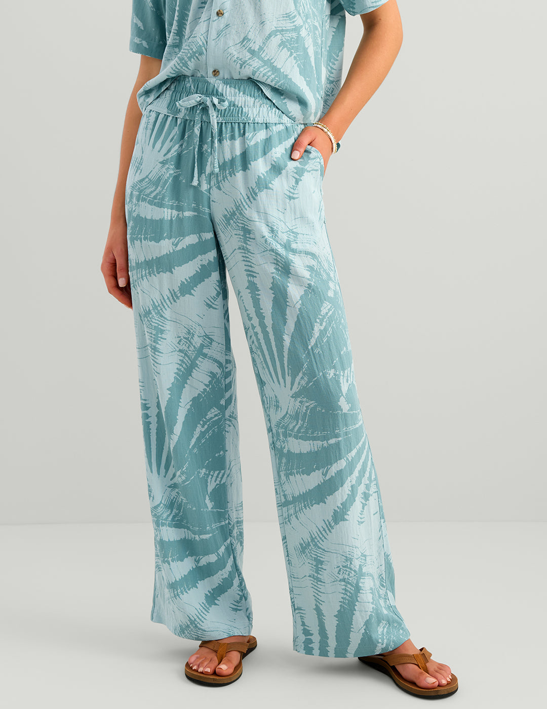 The Breezeway Pant delivers the easy comfort and effortless style that define the Breezeway Collection. Crafted from a soft, linen-like blend of 96% rayon / 4% nylon, these wide-leg pants offer a relaxed fit and lightweight feel perfect for warm coastal days. The high-rise silhouette and 3” encased elastic waistband with a self-fabric drawcord provide a flattering, adjustable fit, while open hand pockets and horn-button back pockets add function and subtle charm. With a 30.5” inseam, the Breezeway Pant moves with you from dockside mornings to laid-back evenings by the water.