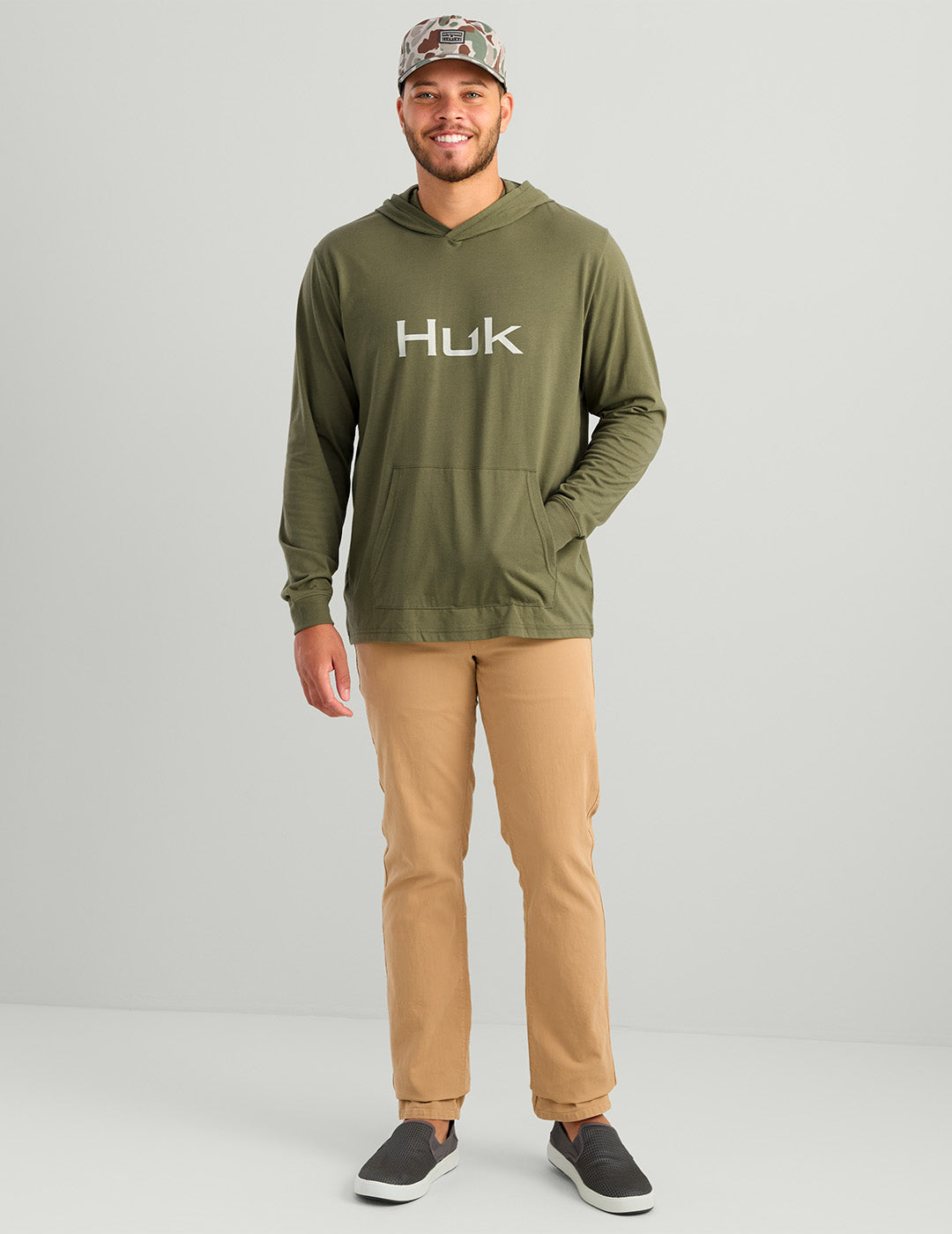 The Huk'd Up Long Sleeve Hoodie Shirt is made from a soft cotton blend that feels great whether you're on the water or off. Featuring a relaxed hood and a Huk logo graphic, it’s an everyday essential for anyone who lives the outdoor lifestyle.