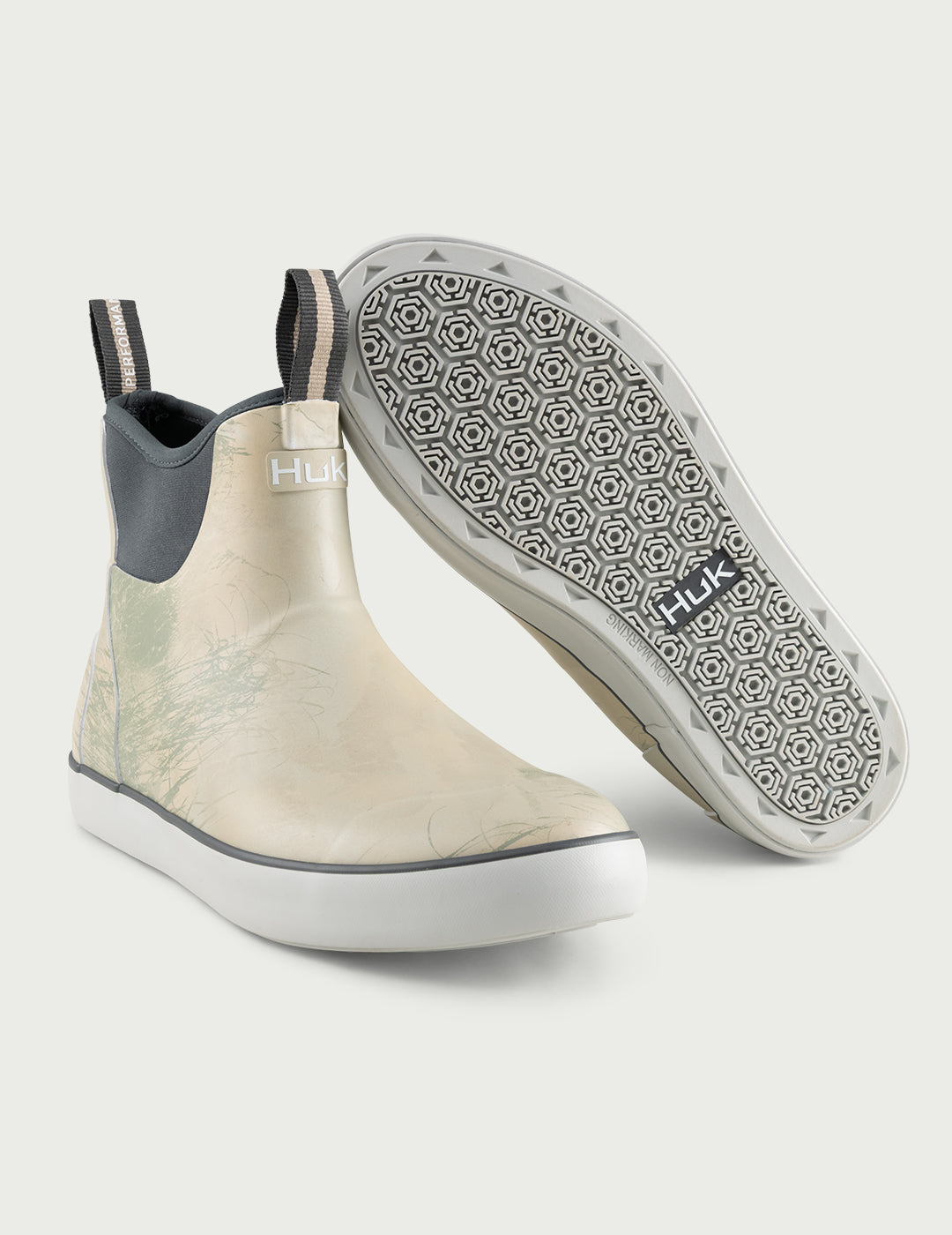 Sometimes, the best fishing is found in the worst conditions. Huk's Rogue Wave fishing boots are specifically designed for all-day comfort and engineered for optimal performance in any condition. These slip-on style boots are constructed of incredibly durable neoprene rubber for protection from the elements and reliable strength. Carefully designed with positive traction in wet conditions, Huk’s exclusive Grip-X Slice outsole traction pattern and microchannels ensure stable footing that grabs in all directions, no matter how slick the boat deck or dock may become. Breathable mesh liners help ensure the boots stay dry on the inside, keeping the wet on the outside. The comfortable rounded toe and non-marking outer sole help make the Huk Rogue Wave boots the right fit for wet weather.