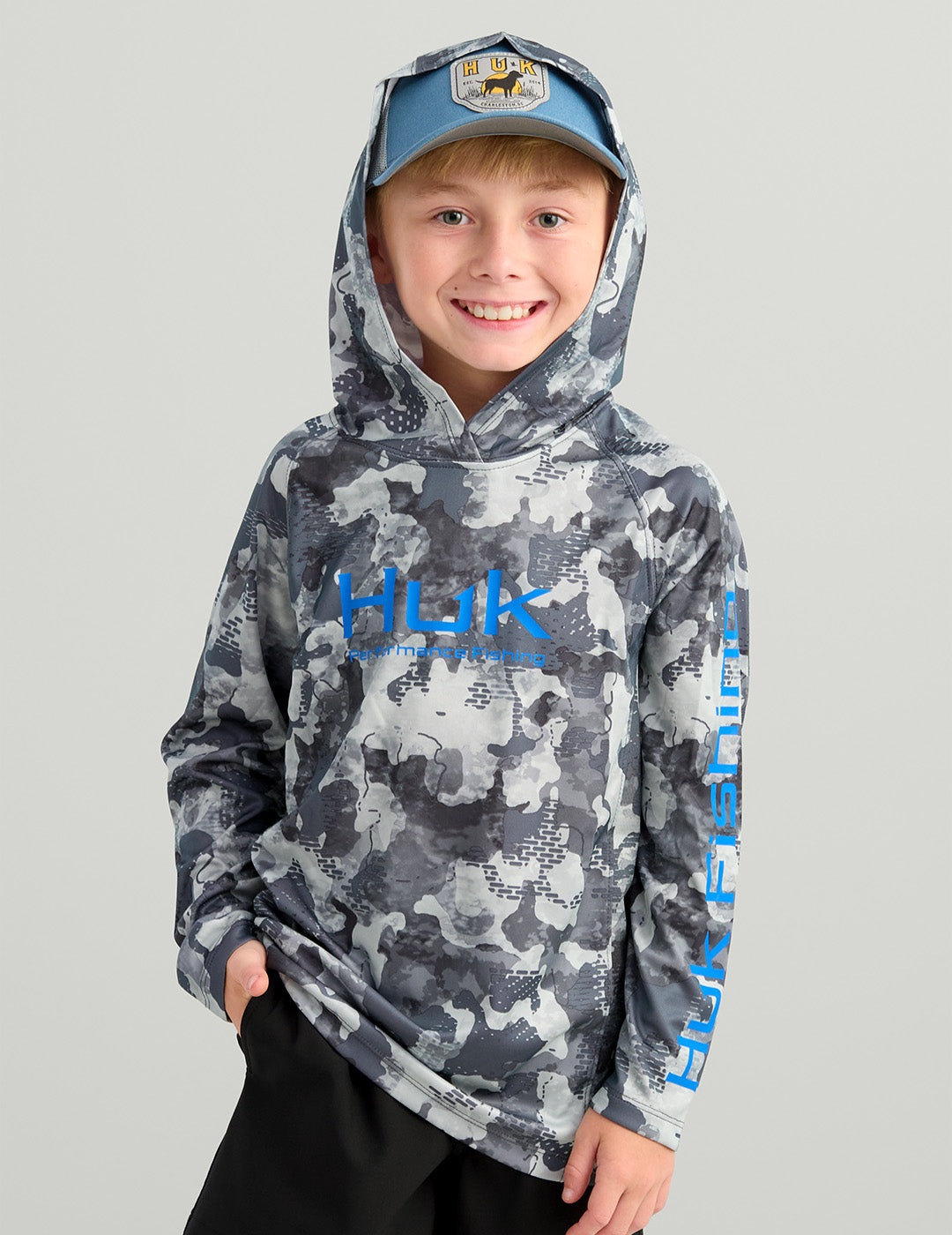 The Huk Kids Pursuit Performance Hoodie is a lightweight, breathable performance garment, uniquely designed for the young angler. Constructed from 100% polyester and boasting a 50+ UPF rating, the mesh sides enhance ventilation and comfort while out on the water. With the Kids Pursuit collection, young fishermen can pursue their passion in style and comfort.